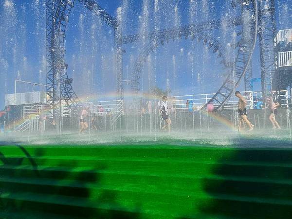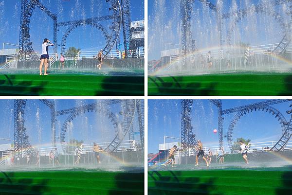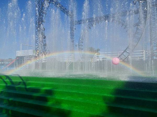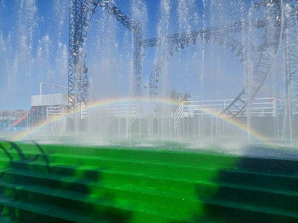 噴水舞台,在太陽照射下,出現彩虹。