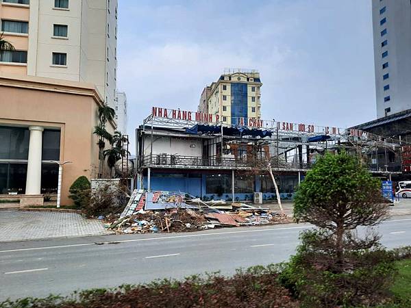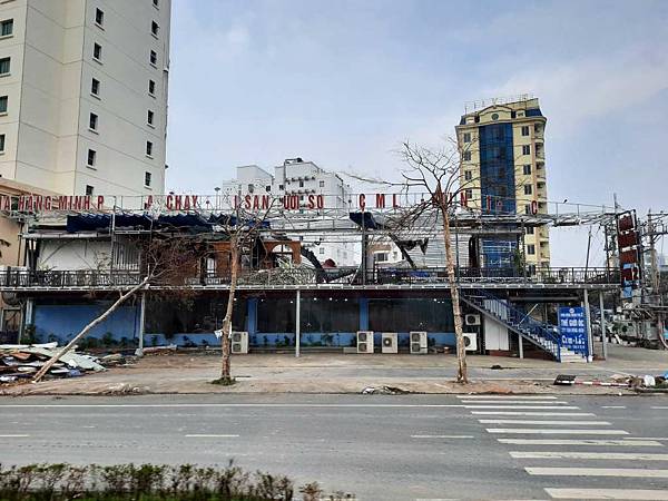 沿路都可看到上禮拜摩羯颱風侵襲過後的慘狀,是下龍灣30年來最嚴重的災情。