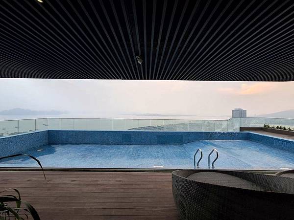 沒關係,房間看不到,我們到25樓空中泳池來看,結果泳池也遭受颱風侵襲,無法使用,原本我們還有帶泳衣來。