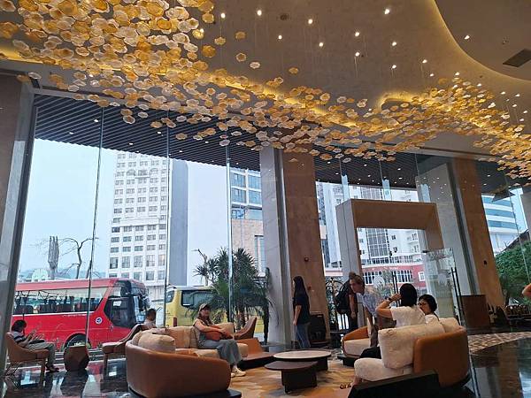 回到飯店近7點,導遊讓大家先休息一下,7點半帶大家去按摩,今天晚上的按摩是自費的,比爸不喜歡按摩,而且第3天就有越式洗頭(包含在行程裏),所以我們就沒參加了,在大廳悠閒地拍照。