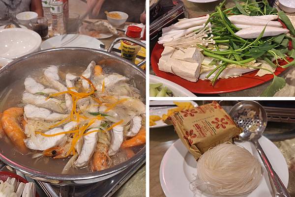 海鮮火鍋湯,也不錯喝,右下角還有蝦麵及河粉可以加,但實在吃不下。