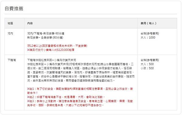 倒是下龍灣快艇巡曳來回+小扁舟欣賞天井洞,我們認為行程已包含天井洞景點,這項也可不參加,但導遊在車上說原本500元快艇只有15分鐘,再加400元有45分鐘,而且又會帶我們去別的景點,所以總共900元,在不是很清楚地情況下,大家都選擇了參加,還好隔天玩完後,覺得值得。