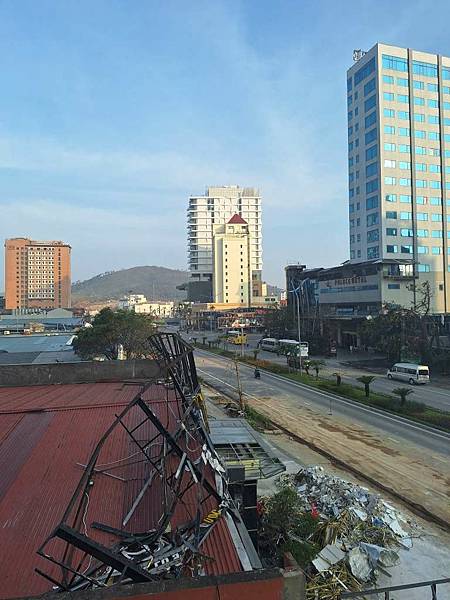 用餐位置看出去,隔壁鐵皮屋也被颱風吹壞了。