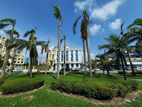 前方的建物充滿法式風情。