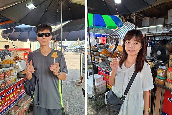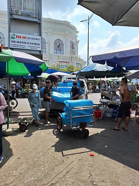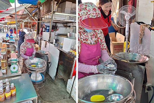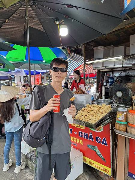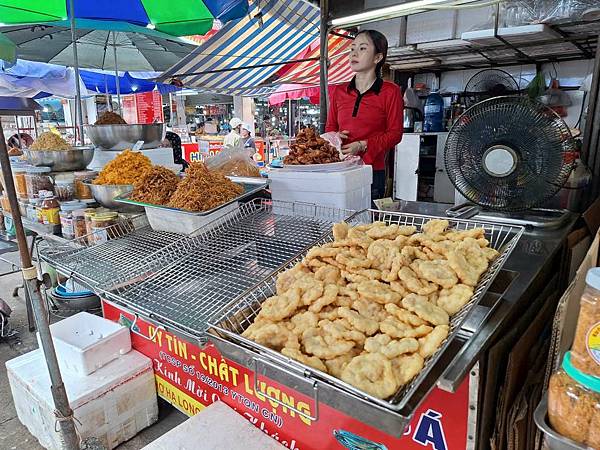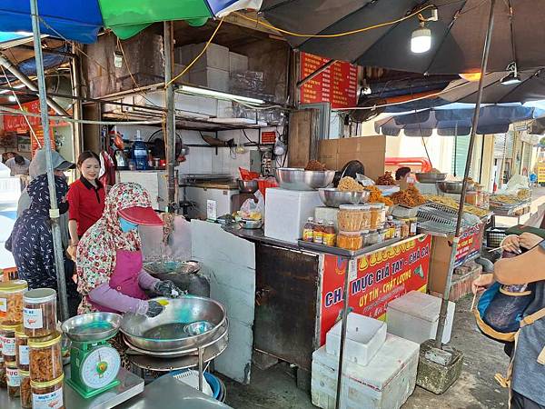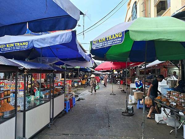 接下來導遊帶我們走去傳統市場內,有賣菜、賣肉,最多的是賣海鮮,有魚、蝦、花枝、牡蠣、貝類等,跟台灣鄉下市場差不多。