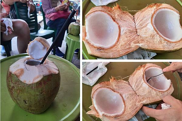 導遊說,比較老的椰子水比較甜,比較嫩的椰子肉比較甜,因為椰肉會將甜份釋放到椰子水裏。