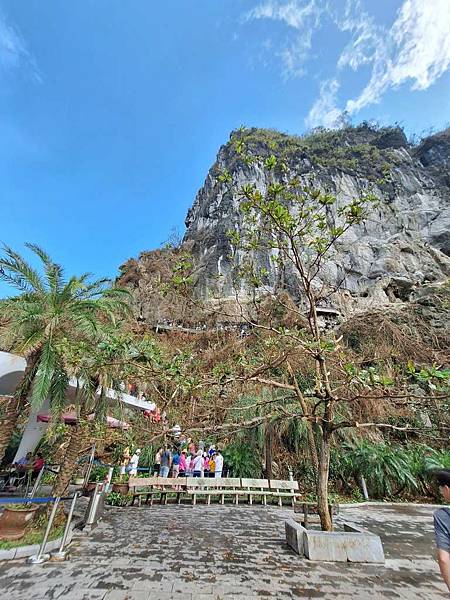 導遊說她真的驚訝,因為山壁上的樹木都因為颱風侵襲而枯萎、掉落。