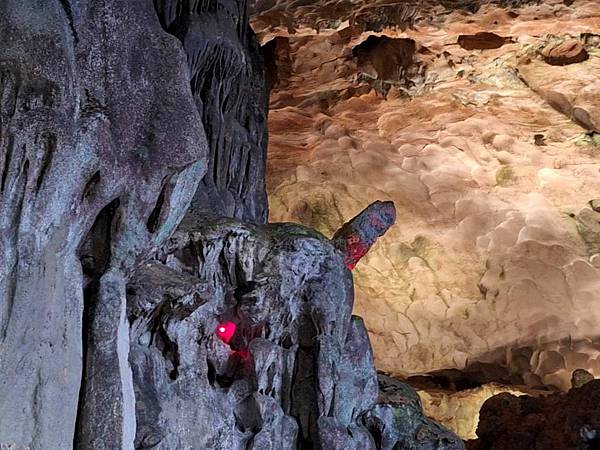來到第3個洞,首先映入眼簾的是這個紅色燈光翹翹的鐘乳石,神似男生的……。