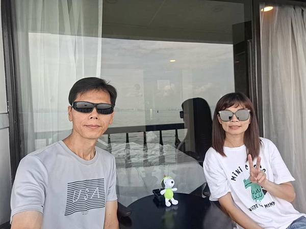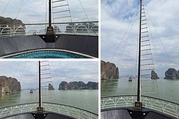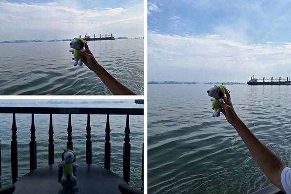 也差不多9:40了,退房前往餐廳經過船頭泳池,發現這邊景色相當好看,而且再上一層,更好拍照。