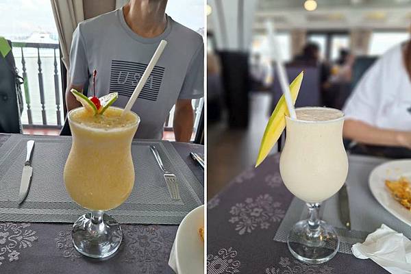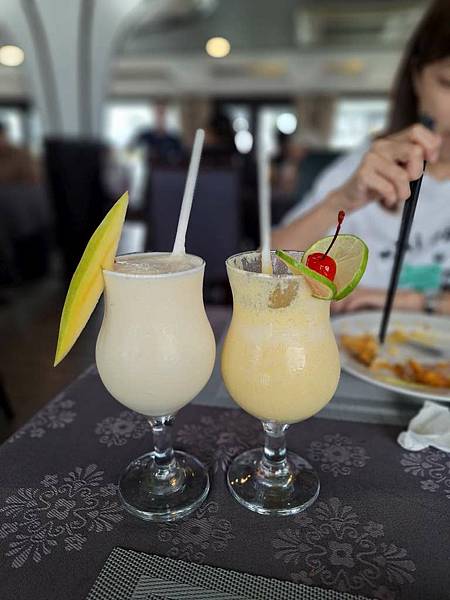 這時突然宣布Happyhour買1送1,剛好我們2個人可以一人1杯,於是點了綜合果汁及芒果汁。