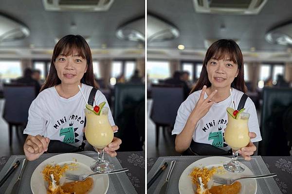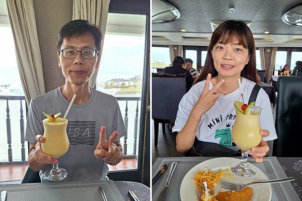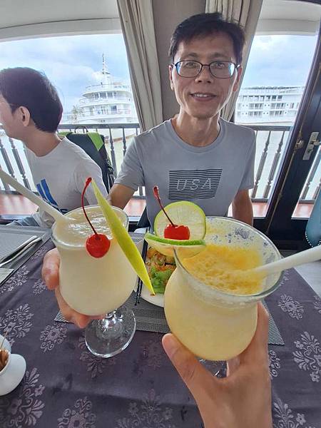 用果汁慶祝這2天1夜的下龍灣海上過夜行程圓滿結束,讚!!