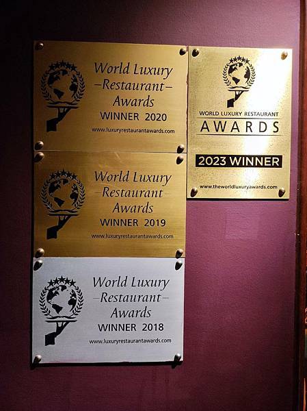 晚上快7點,到了今晚的法式餐廳,牆上貼上獎狀。