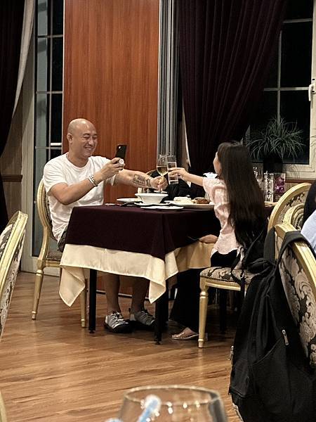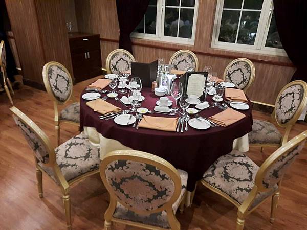 領隊跟導遊坐小桌,感覺是浪漫法式情人晚餐。