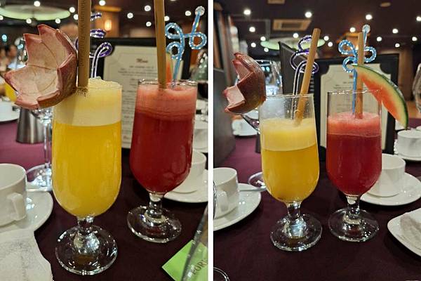 隨餐附1杯紅酒或白酒,但我們不喝酒,所以改百香果汁及西瓜汁。