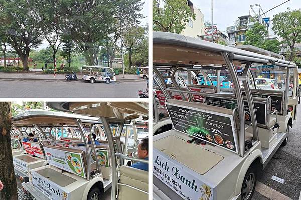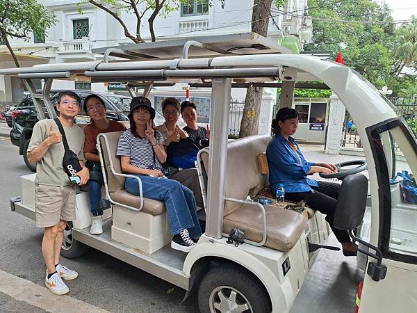 我們到昇龍水上木偶戲院這裡搭電瓶車,搭車前先去戲院裡上廁所,這邊需要收費,1人5,000越南盾,會給你一疊厚厚的衛生紙。