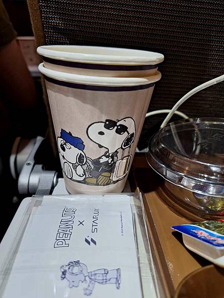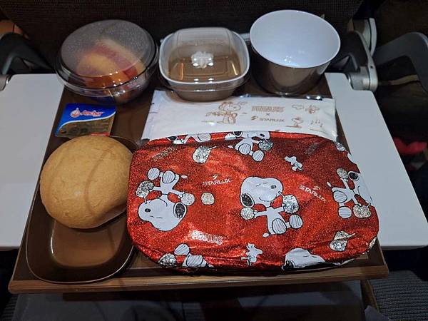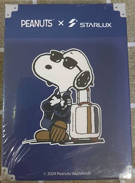上飛機後,過了一會我們才跟空服員登記史奴比撲克牌,結果都發完了,還好團友們有拿到藍色撲克牌(回程),於是我們用第1天要到的紅色撲克牌(去程)換了1副藍色撲克牌,這樣紅色藍色就各有1副了。(不過,因為紅色撲克牌放在行李箱,到了桃園機場行李轉盤才換)