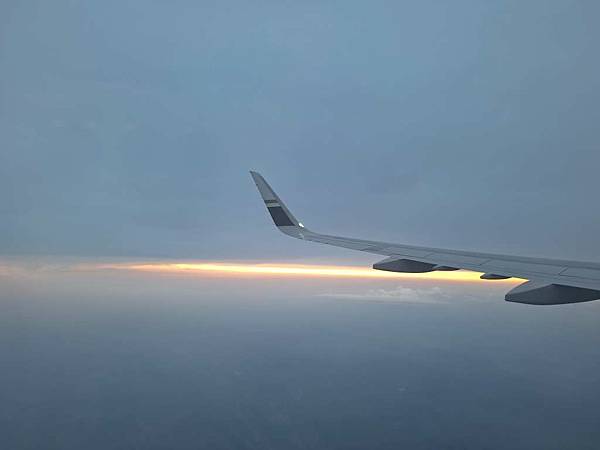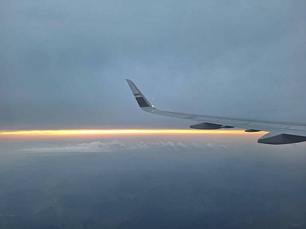 飛機窗外剛好夕陽,長長一條很漂亮。
