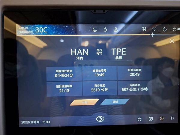 預計21:13抵達桃園機場,比原表定21:40快了許多,可能機長趕著下班,呵呵。