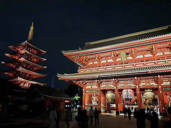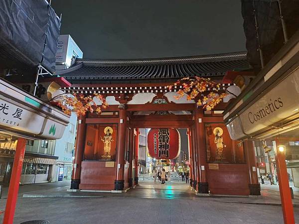 走了5分鐘左右,到了雷門,晚上人不多,保全人員在巡視大燈籠底下有無被破壞。