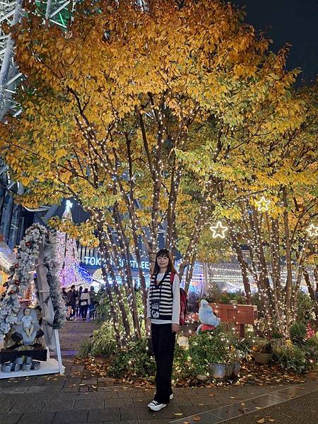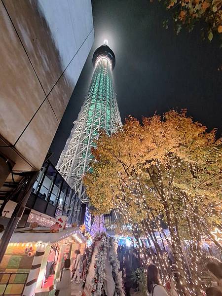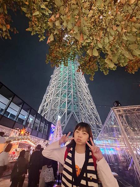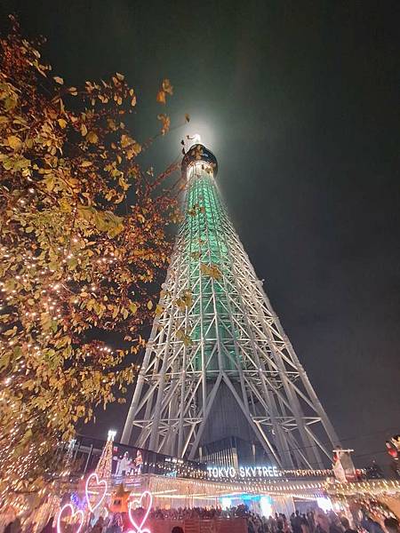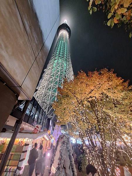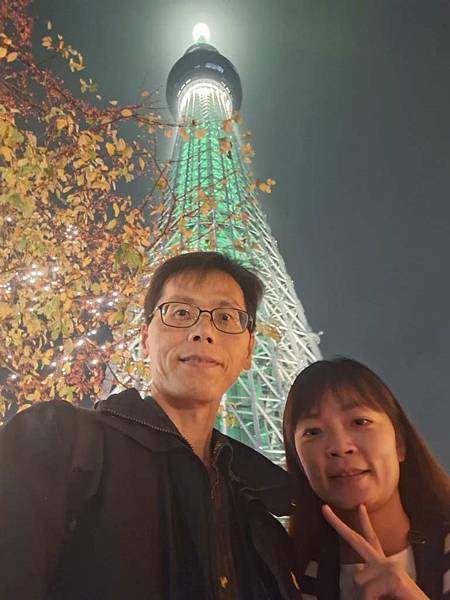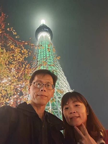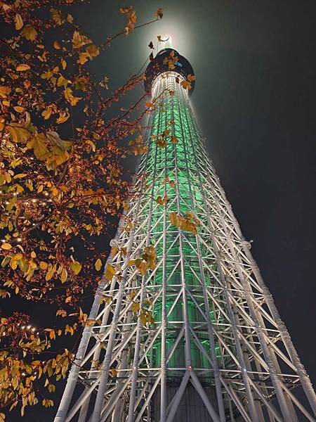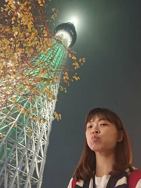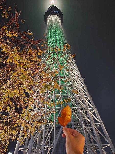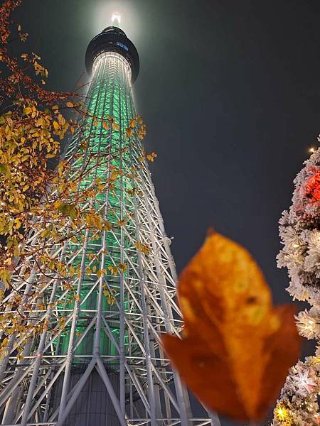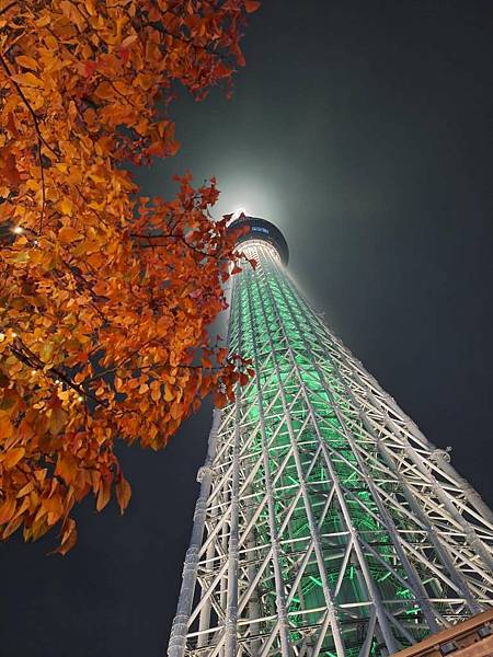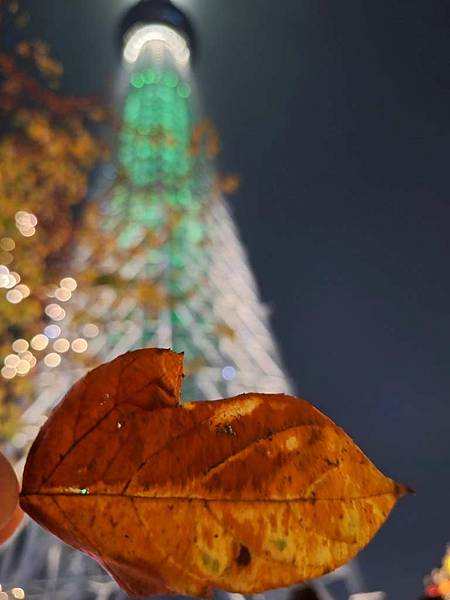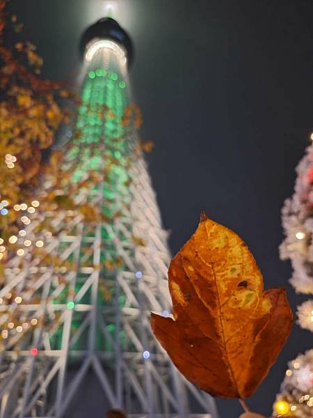 紅紅黃黃的樹葉,跟晴空塔形成一幅美麗的畫面。