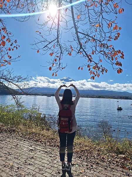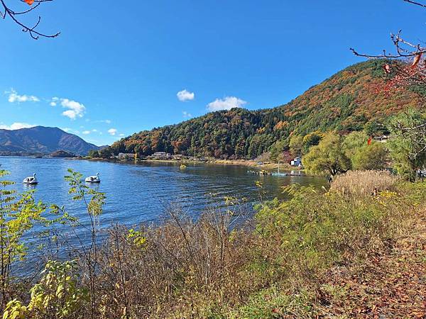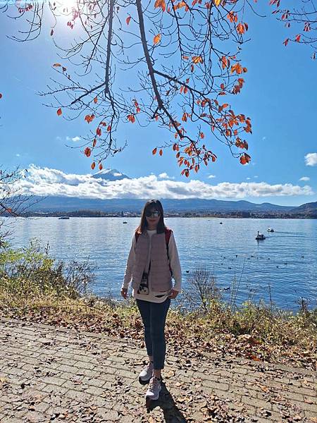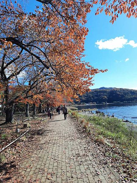 逛完楓葉迴廊之後,我們趕緊來到河口湖畔,這時已經11:30了,還要預留10分鐘走回去,所以只剩35分鐘。