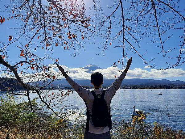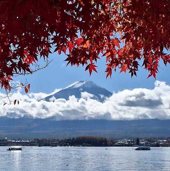 這張枯枝、楓紅、富士山、河口湖,超美。