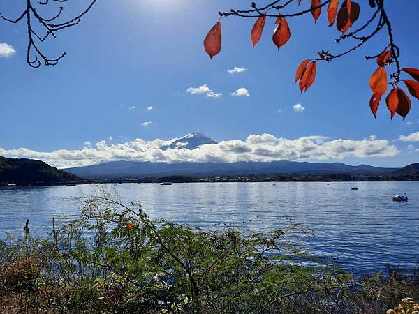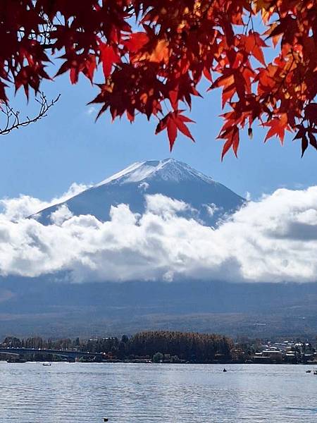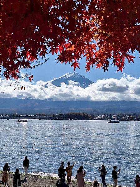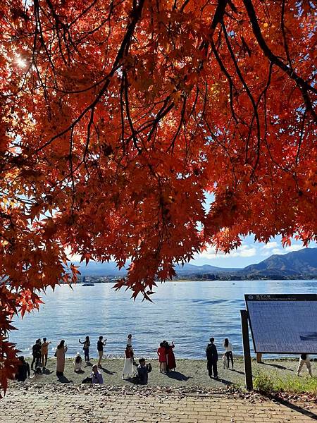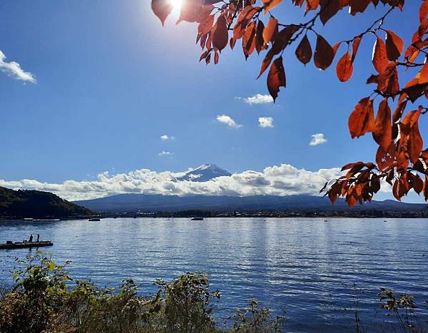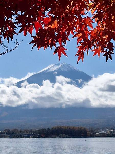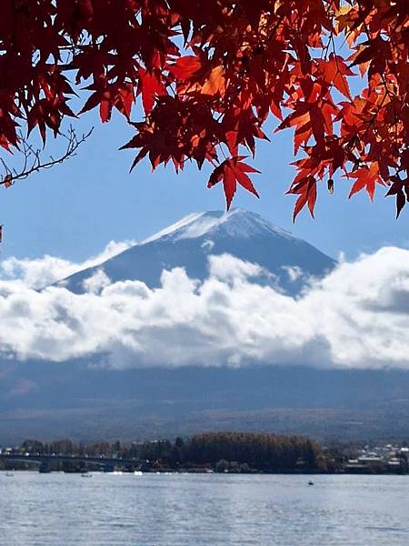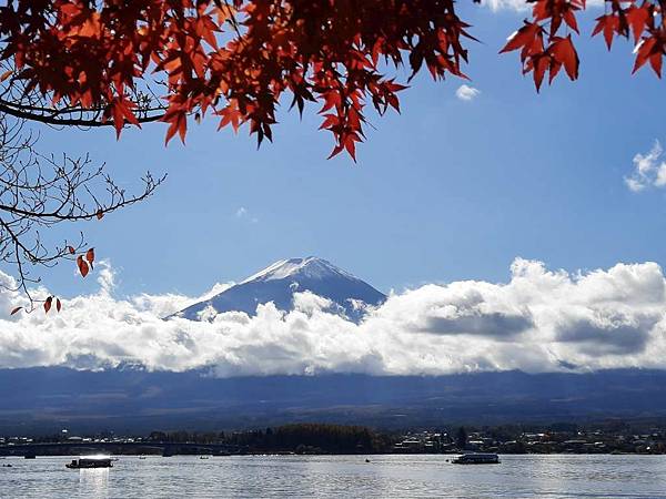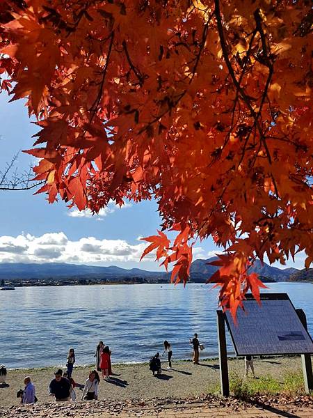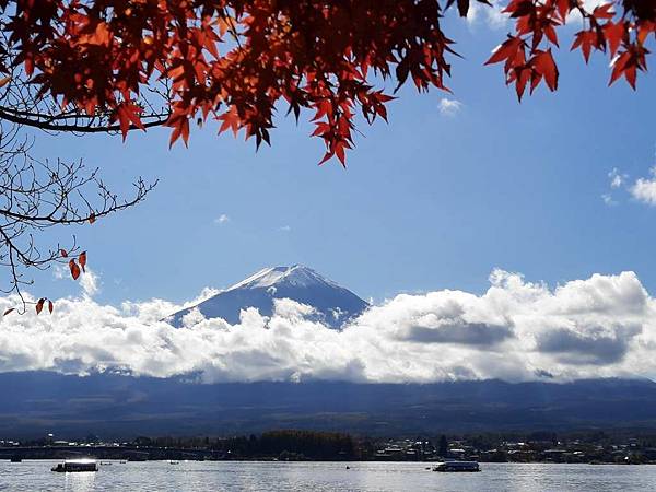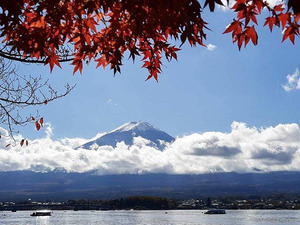 河口湖畔的楓葉正紅。