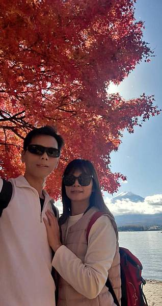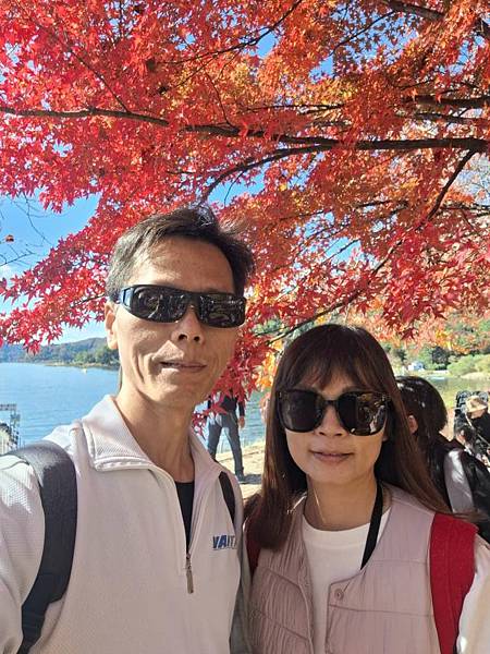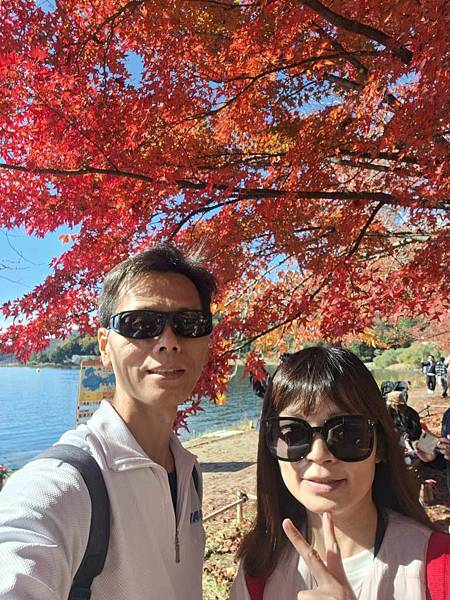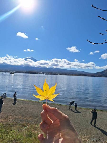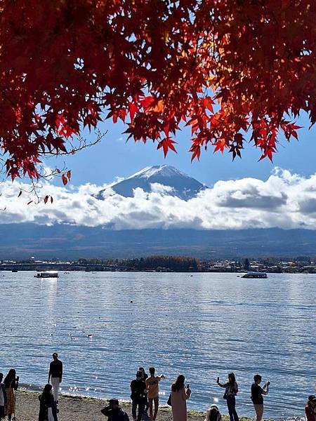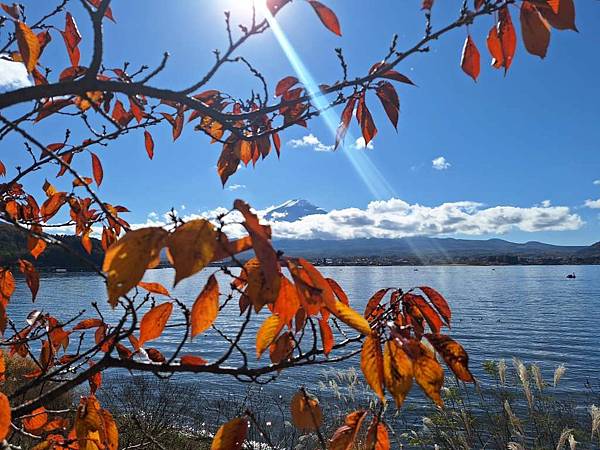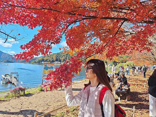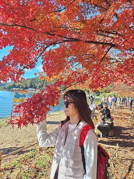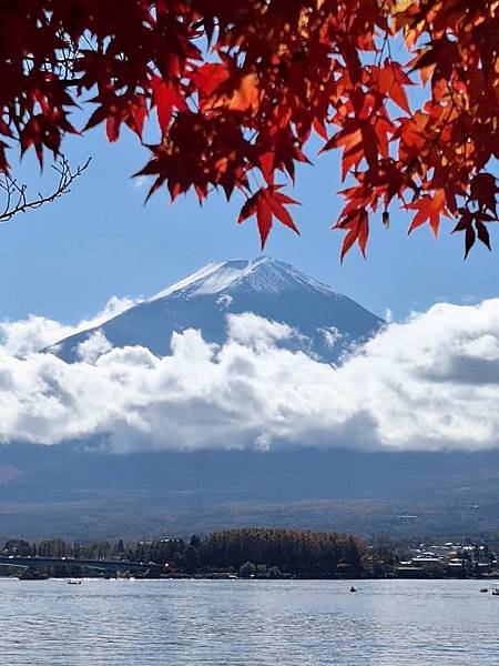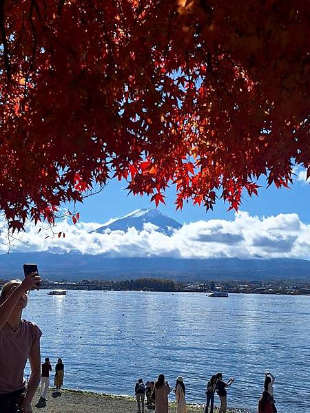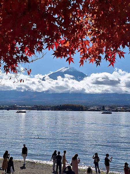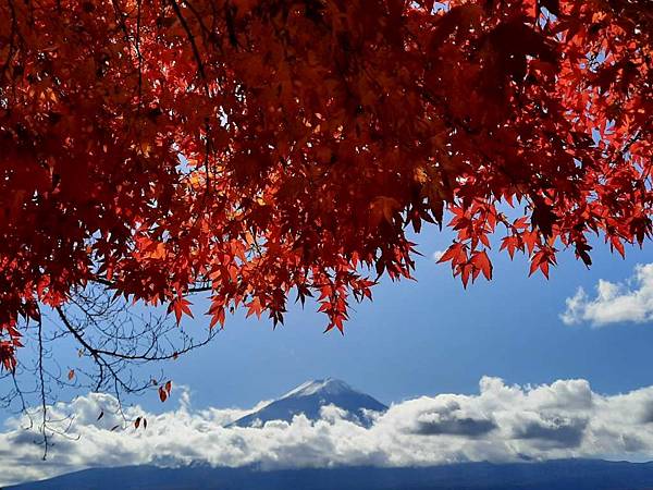 河口湖畔的楓葉正紅。
