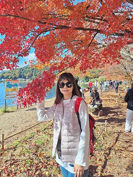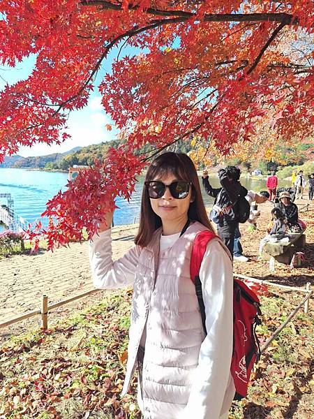 大片的楓紅、湖畔的遊客,交織出美麗的畫面。
