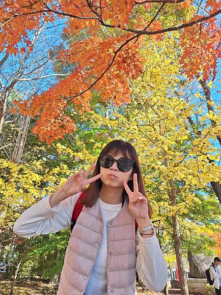 這裡的楓紅超漂亮,旁邊遊客也被吸引跑來近拍。