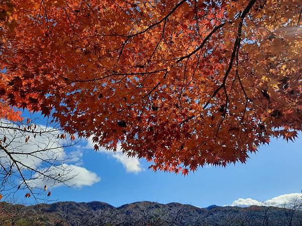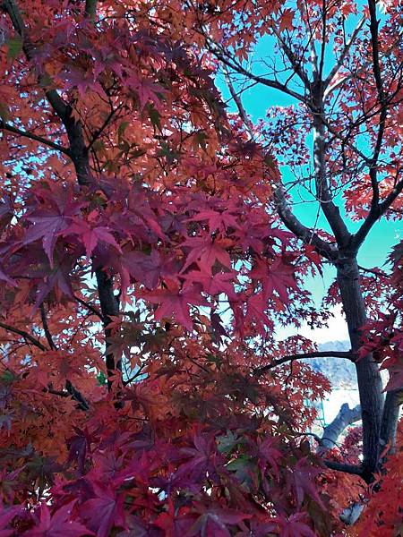 對面的楓紅感覺也不賴,但我們沒有時間過去欣賞了。
