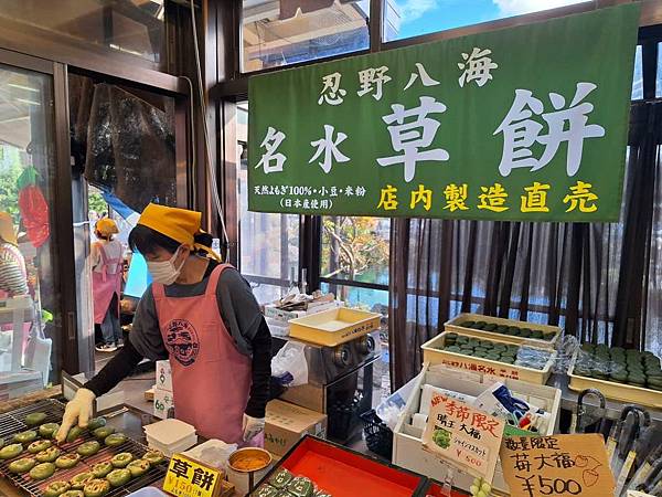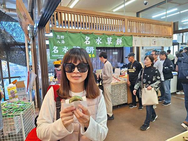 逛完湧水口買了伴手禮及磁鐵貼,又買了這裡的名產-草餅,外面的皮很像草仔粿,裡面則是包紅豆。