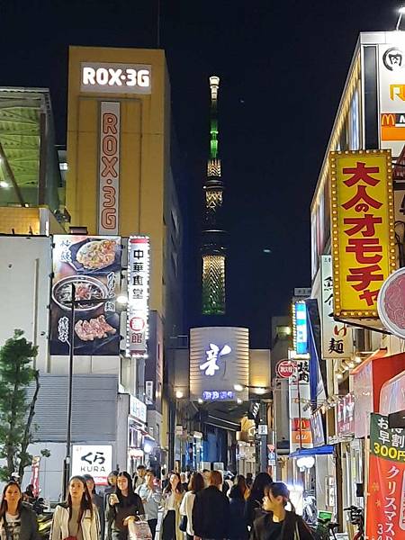 再往前走,新仲見世街的巷子,這裡拍晴空塔就好看許多。