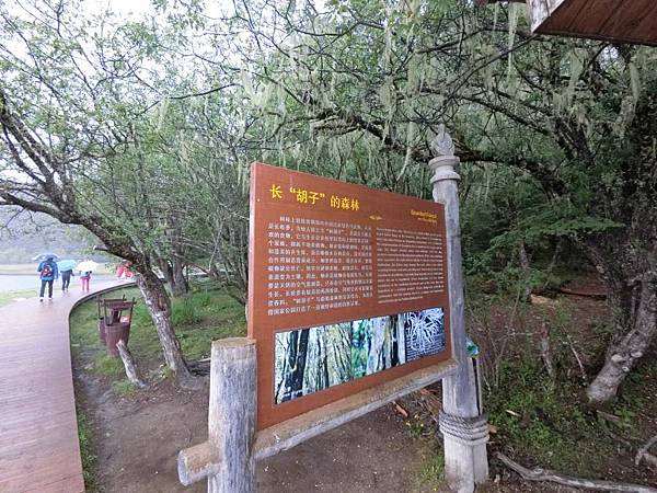 樹上掛著飄飄冉冉淺灰綠色絲掛植物,叫「長松夢」,是一種地衣植物,掛著樹枝上,看起來就像樹木長鬍子一般,十分有趣。