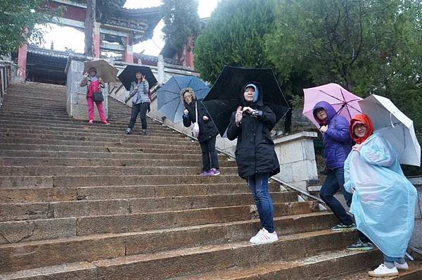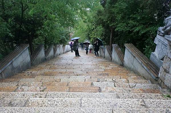 雖然下著雨,只是既然來了,我們還是爬上去看看。同團有些人就直接去餐廳。