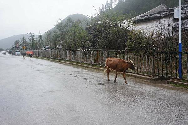 離開普達措國家公園,我們往市區前進。在路上隨意就可以看到牛隻,相當特別。