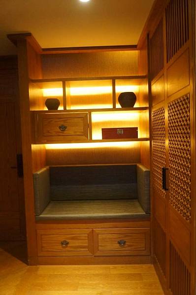 房間內部裝潢以木頭為主,呈現古典高雅的氛圍。