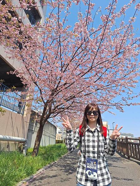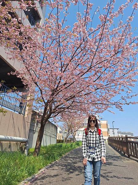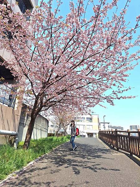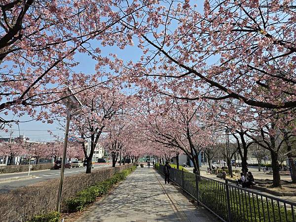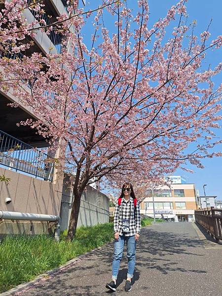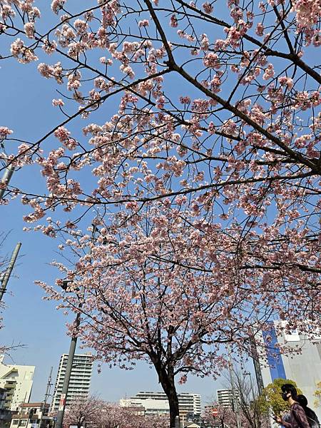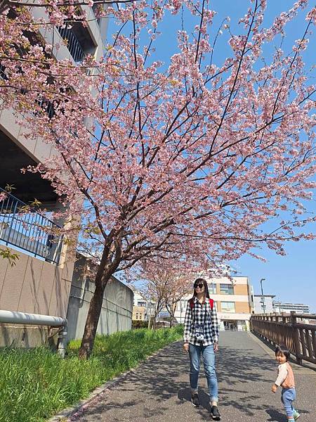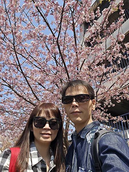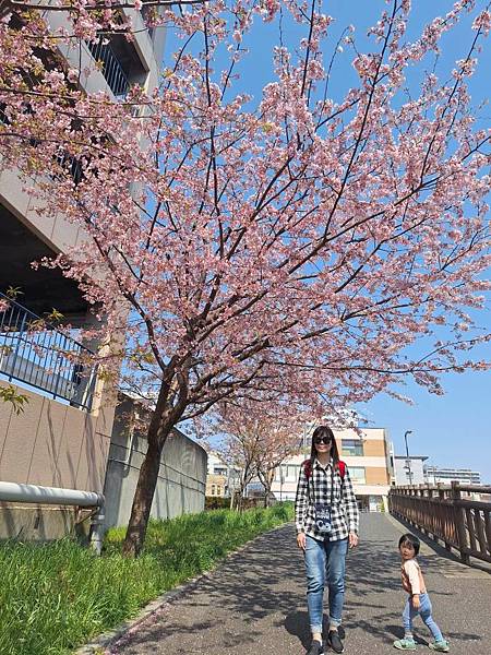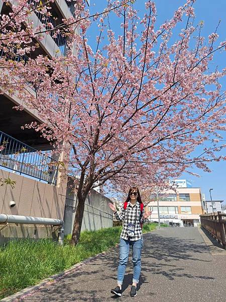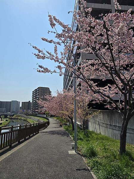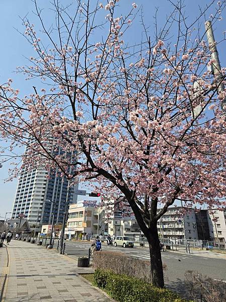 前往賣場吃午餐途中,河岸邊也有幾棵盛開的櫻花。