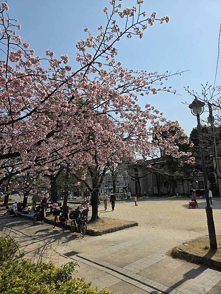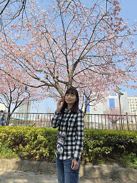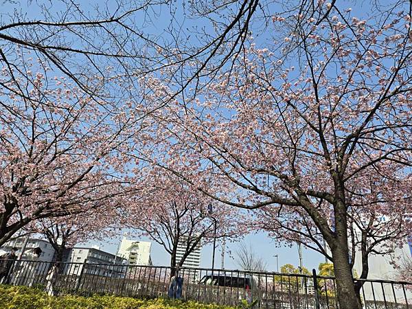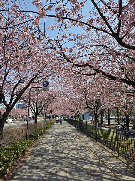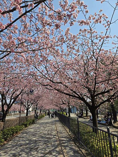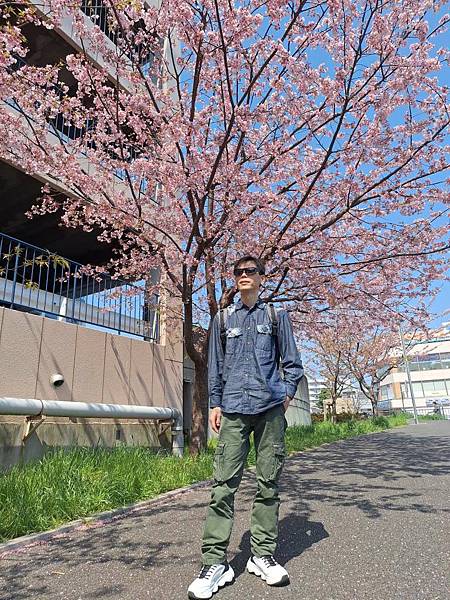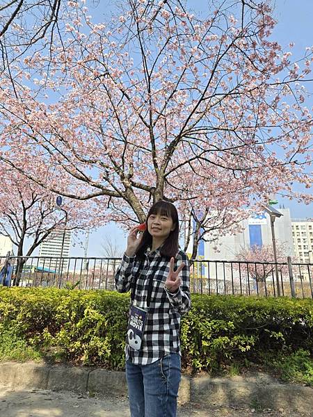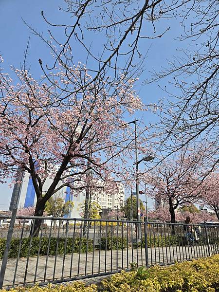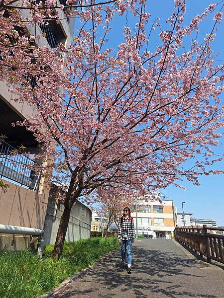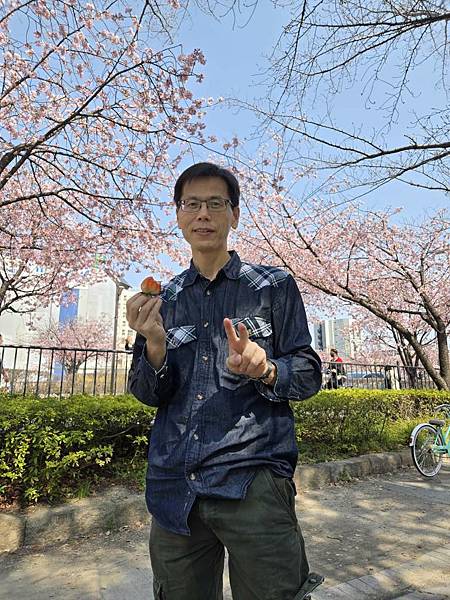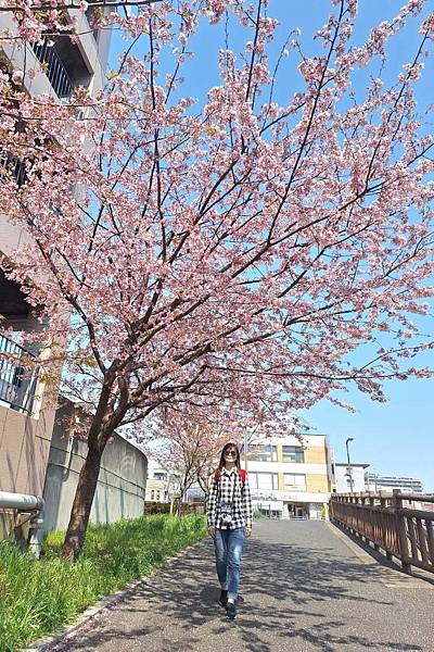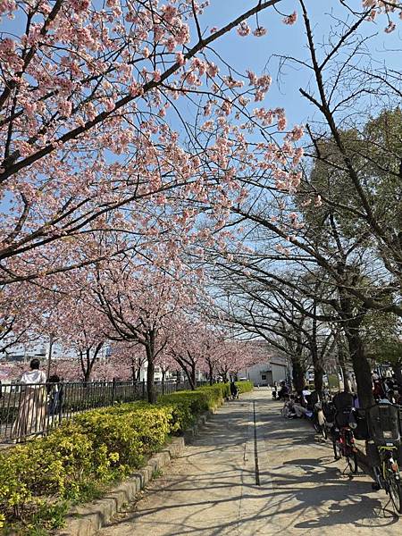 前往賣場吃午餐途中,河岸邊也有幾棵盛開的櫻花。