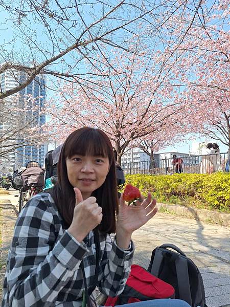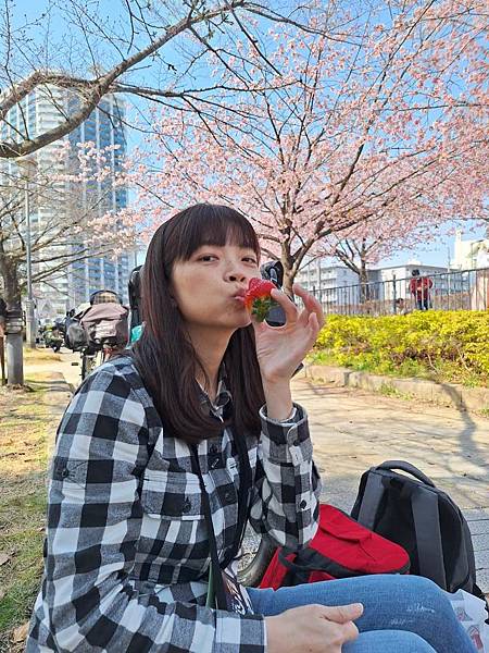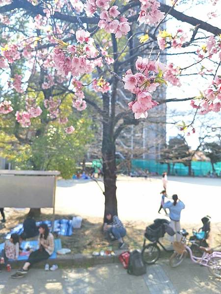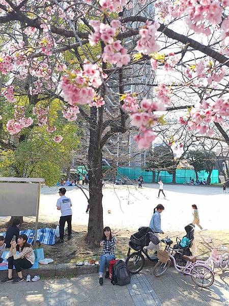 邊野餐邊欣賞櫻花,相當愜意,一圓櫻花樹下野餐的夢想。