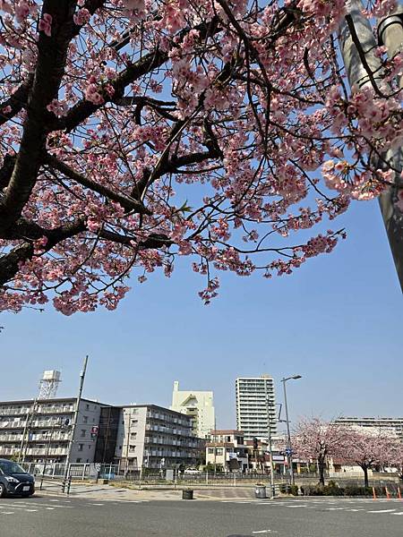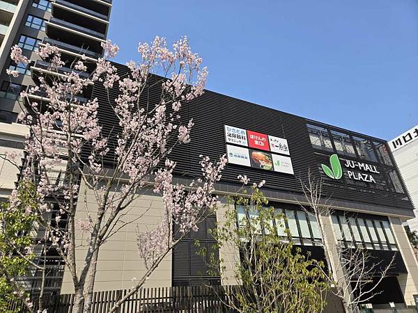 快靠近川口駅的JU-MALL前,有株盛開的櫻花。