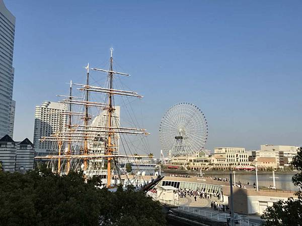 日本丸帆船及摩天輪,今天星期日剛好有活動,底下許多人正在觀賞表演。