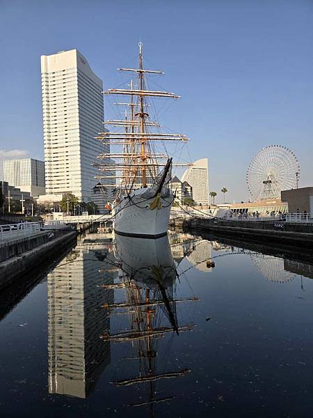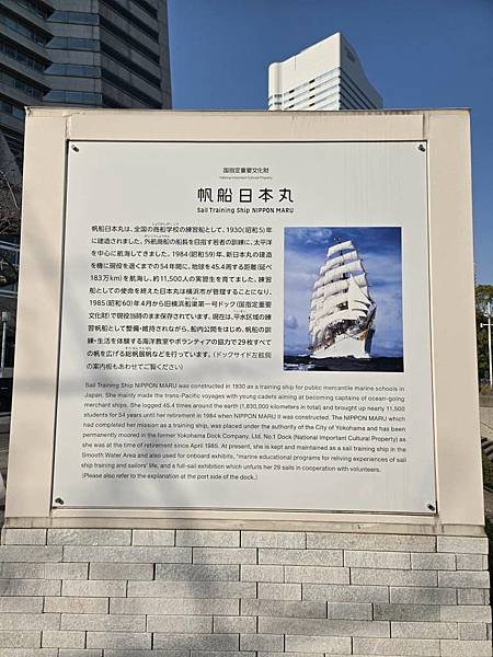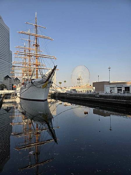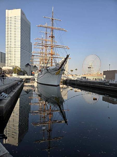 確認晚上夜景位置後,我們來看日本國家指定重要文化財-帆船日本丸。