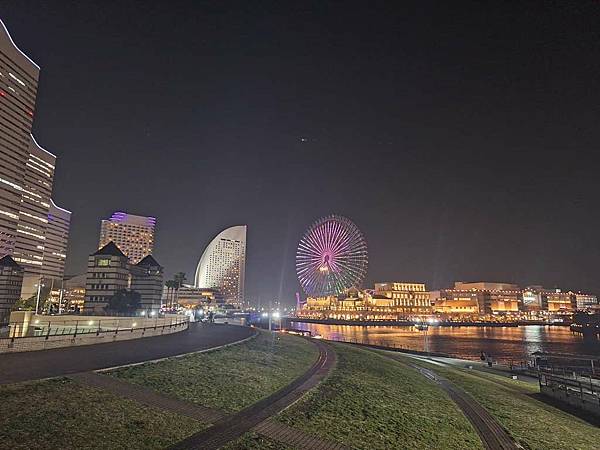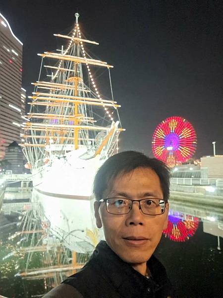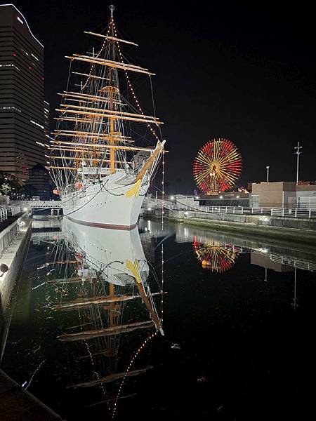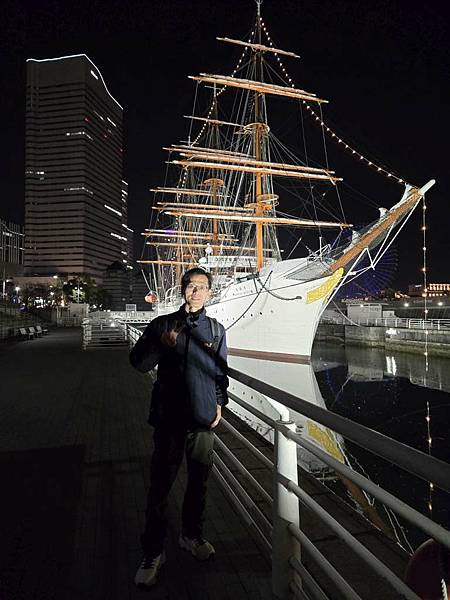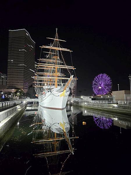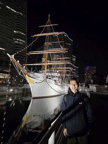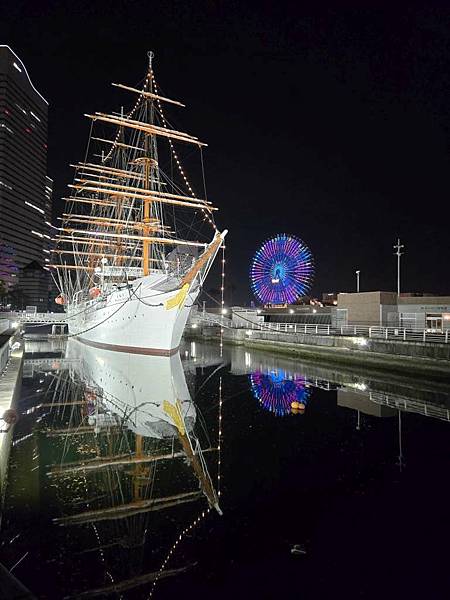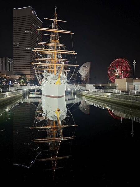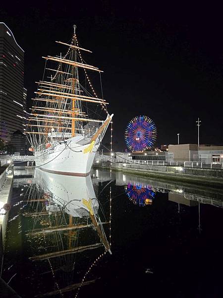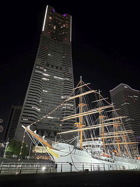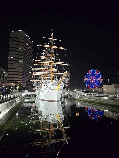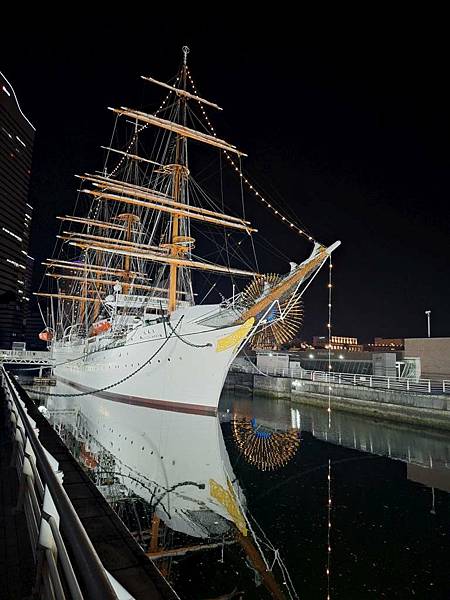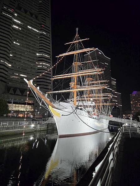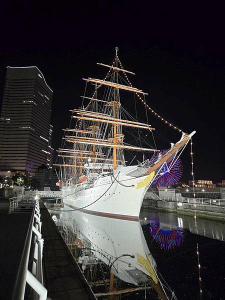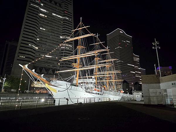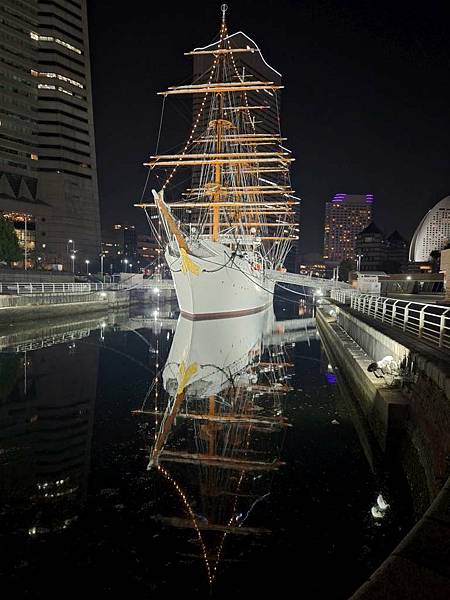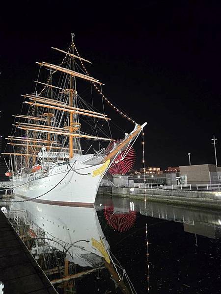 日本丸帆船晚上打燈蠻美的。
