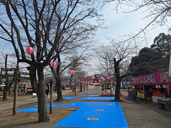 喜多院種了許多染井吉野櫻,地上已經鋪了地墊,不過還沒盛開,僅有一些先開,剛好今天(3/24)東京靖國神社的標本木宣布開花了(5、6朵)。
