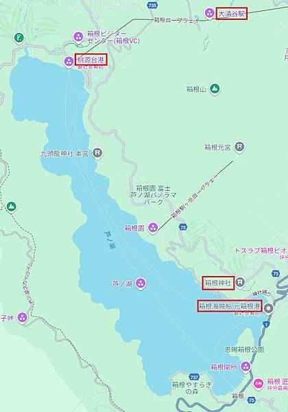 從箱根神社到元箱根港距離不遠,搭車只要5分鐘左右。