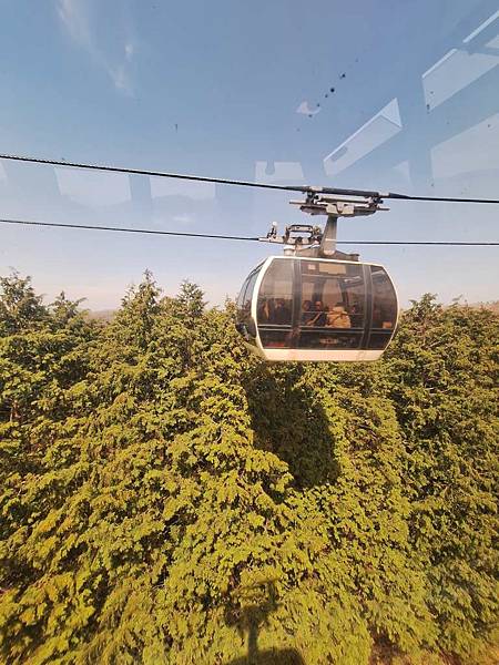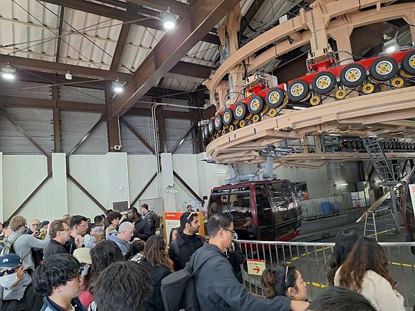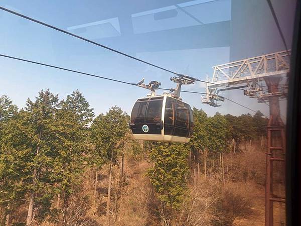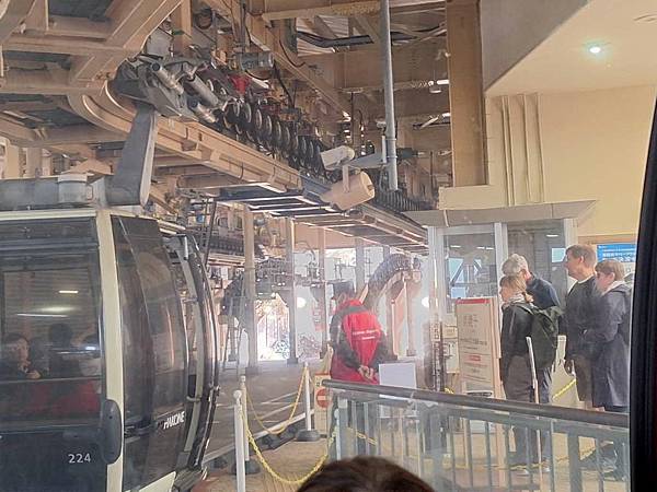 到達第1個纜車站,導遊特別交代不要下車。有幾個外國人等待纜車中,但因為我們前後這幾台都滿了,也無法上來,後面應該會派空車上來吧。