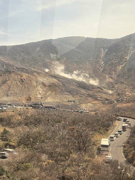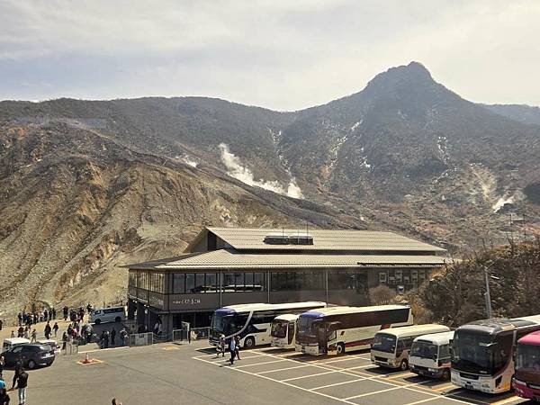 抵達這段纜車終點大涌谷站,標高1044M。從桃源台到大涌谷總共上升了300公尺。如果要往早雲山,則要換搭另一段纜車。