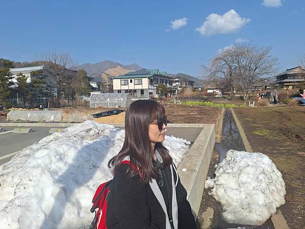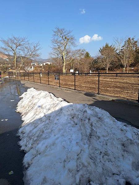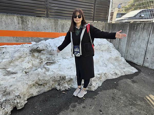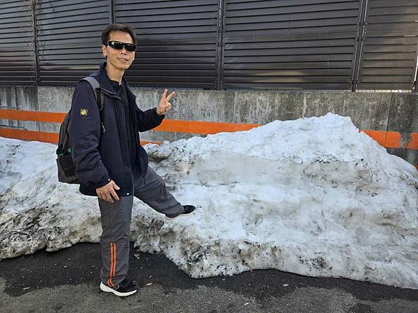 停車場角落有一堆殘雪,還沒開車前再來拍拍照。