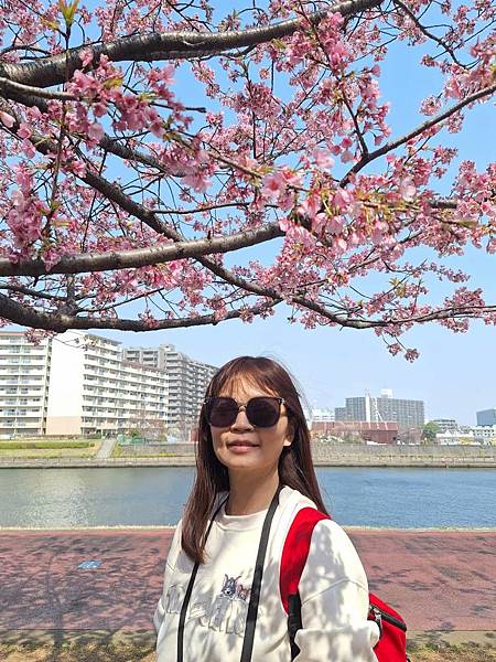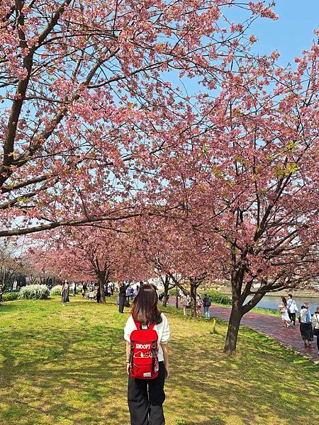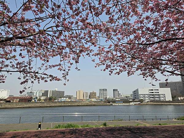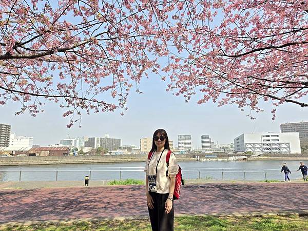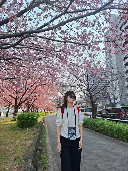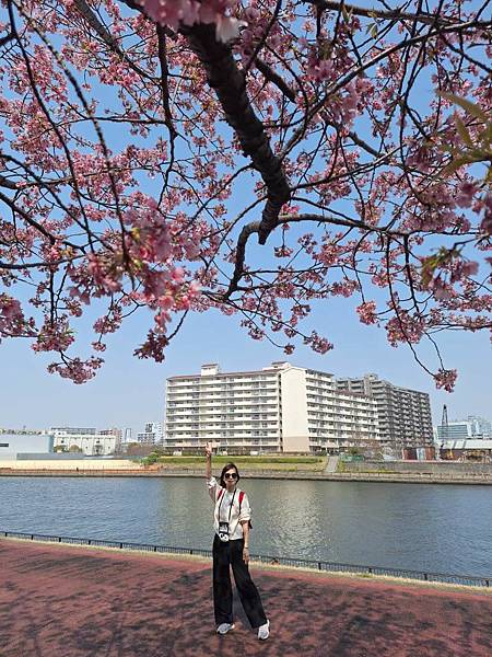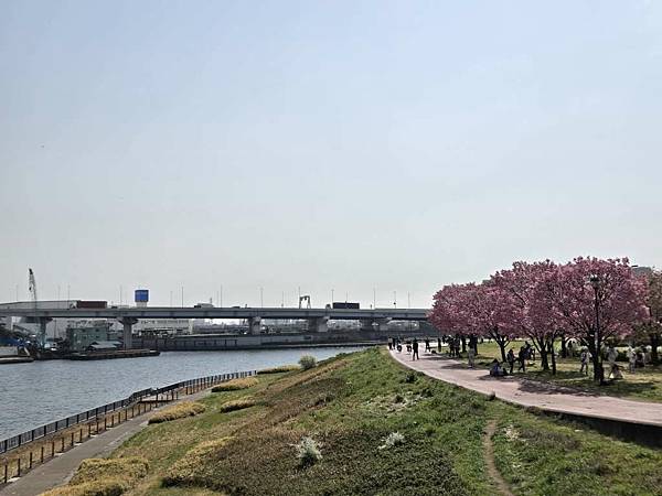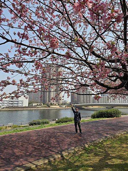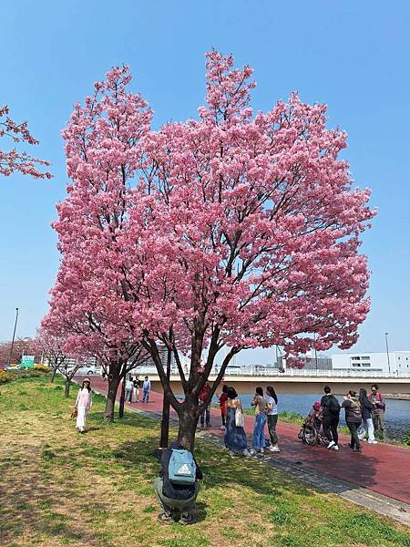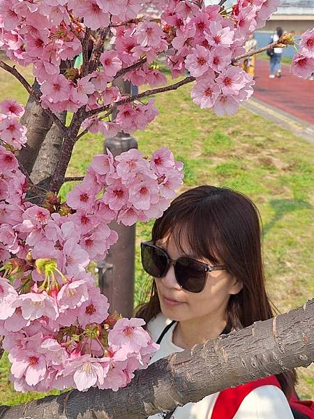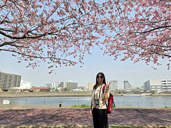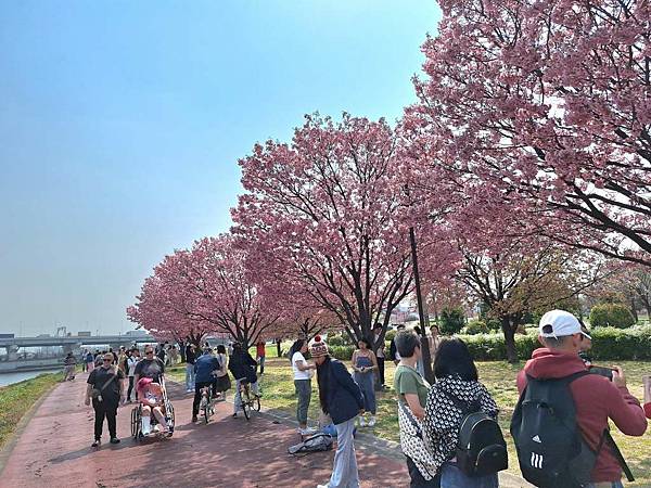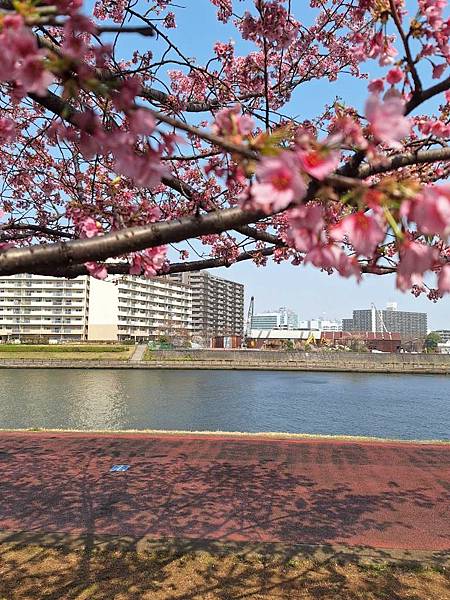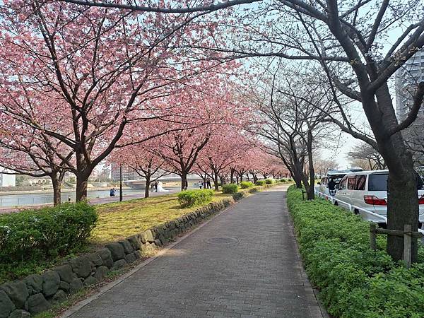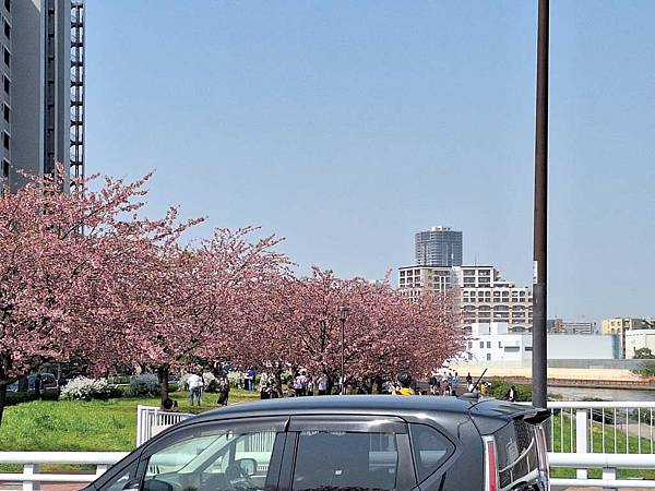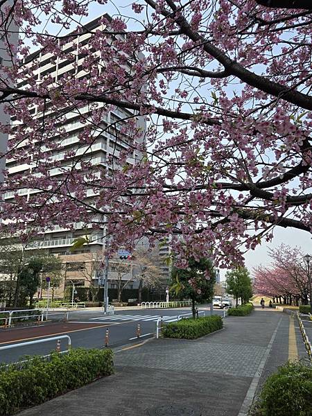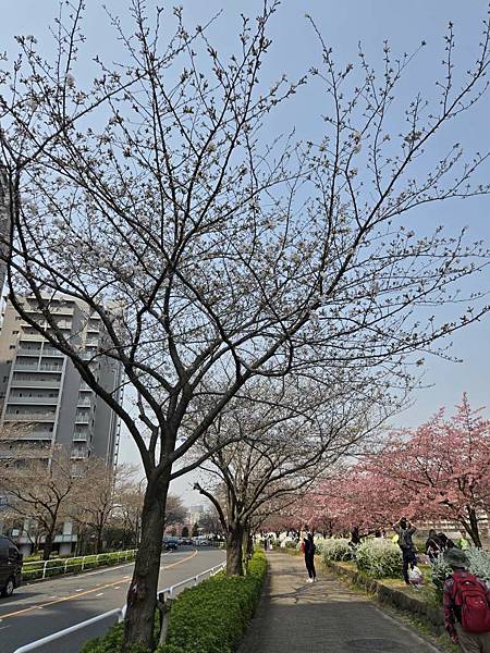過馬路就是出發前我們在臉書上常看到分享的汐入公園大寒櫻。